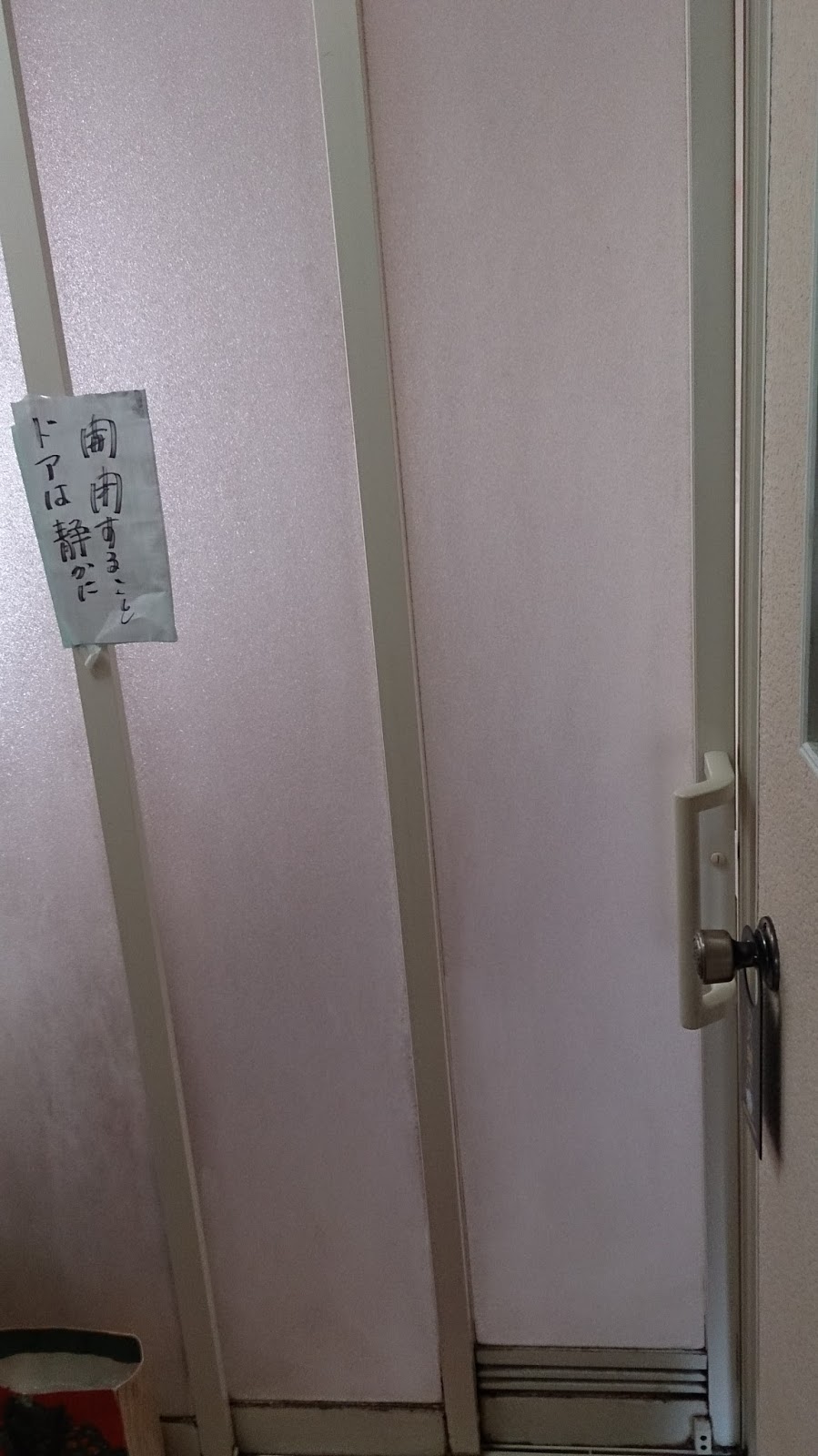 Next, we go in through the front door. When entering a Japanese home or dorm, you always take off your shoes. This is even true of schools, specifically the Elementary through Highschools (not college). In a home, this area is called the Gekan. It is usually a tile floor that is lower than the rest of the house's floor. As you take off your shoes, you step up into the house, being sure not to let your sock clad feet touch the floor of the Gekan because it is dirty. People also usually wear slippers inside of the home that are only used inside the home, never outside.